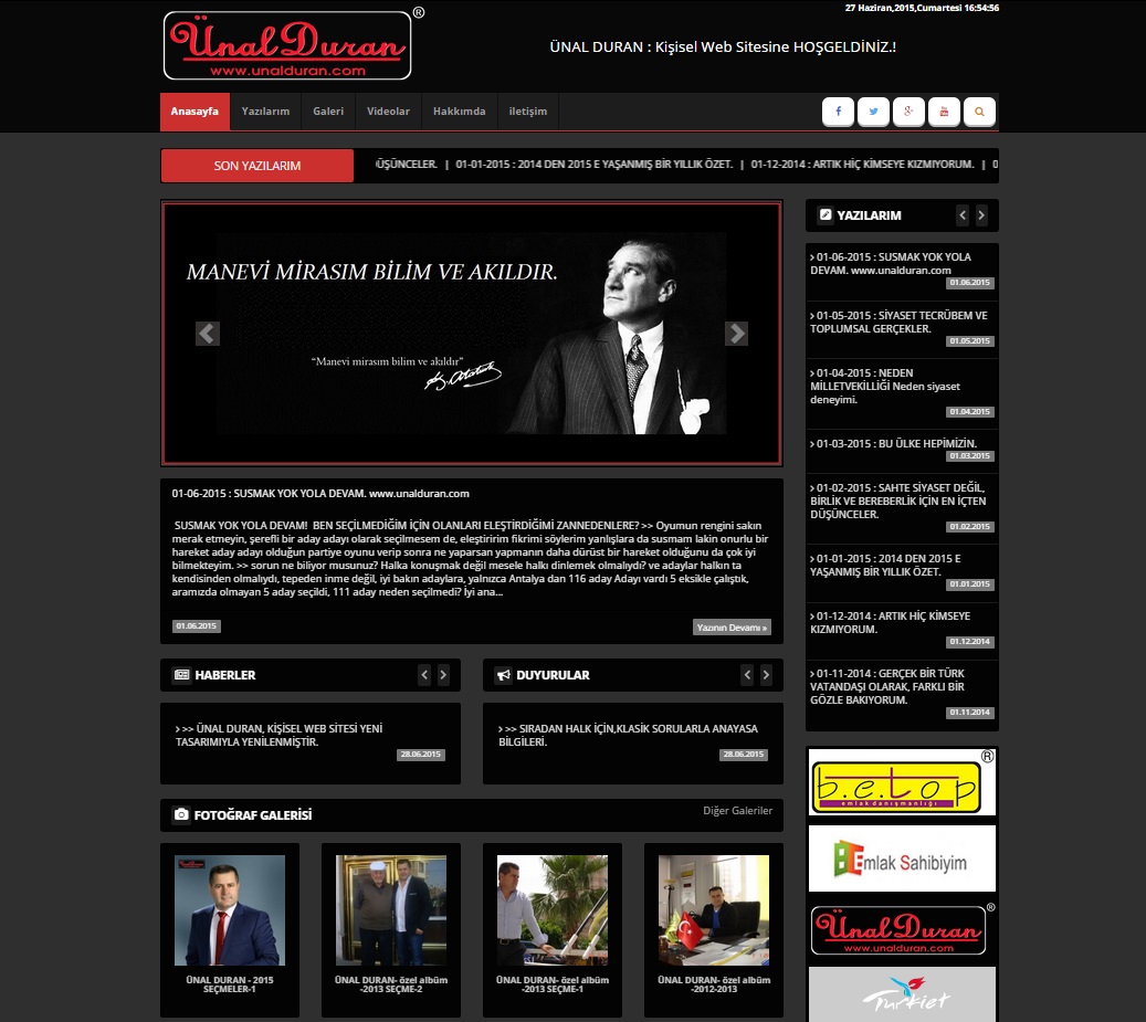>> ÜNAL DURAN, KİŞİSEL WEB SİTESİ YENİ TASARIMIYLA YENİLENMİŞTİR.
