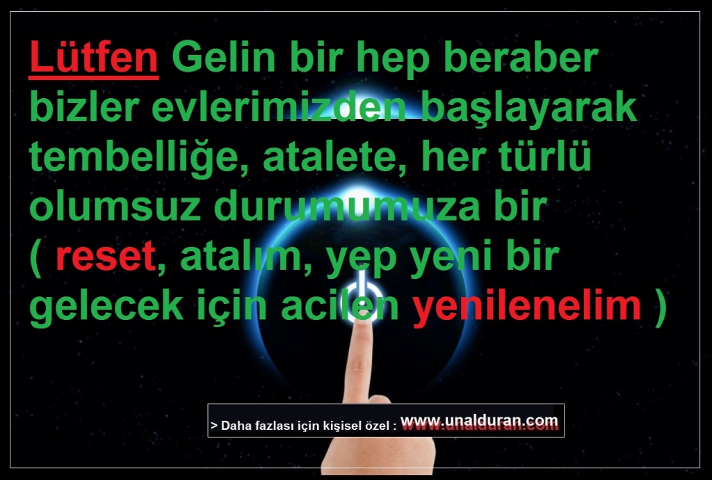 SONUÇ OLARAK, Şöyle bir geçmişe bakıp bugüne ve yârine bakmak gerekir diye düşünüyorum. Yukarıdaki başlığı şöyle atmıştım. NELER OLUYOR? Bir gündem oluştu birileri farklı bir senaryo yazdı, bizler ise yalnızca figüran olarak yaşamaya çalışıyoruz ne yazık ki elimizden hiçbir şey gelmiyor. Evet, yalnızca kendimizi ailemizi devletimizi milletimizi kısa ve net ülke olarak top yekûn kendimize yetmek zorundayız. Ne bir devlet nede hiçbir gücün sizleri korumadığı koruyamadığı zamanlar olur ya, evet tamda bu gücün ortaya koyulacağı zamandayız diyebilirim. Yalnızca aile denilen en büyük gücün bizlerin olduğu gerçeği ile ailemize sarılarak kendi gücümüzü ortaya koyacağımız bir zamandayız diyerek önümüze bakmanın nasıl olacağını anlatmak istiyorum. Bugün tam 90 gün geçti ve ne bir tedavi şekli nede bir çare bulunmadığı söylenilerek yalnızca bu hastalığı bedenen test etmek için evlerimizde bir hasta olarak belirsiz bir süre içerisinde ya hasta olup acile ya da iyi olup evinde kalmamız gerekliliği söyleniliyor. Ben mi çok cahilim ya da uzayı keşfeden altını üstüne getiren insanoğlu bu basit virüse çare bulamadığını bugün dile getirebiliyor bizde inanıyoruz. En acısı da benim ülkemde de aynı yoksunluk görüntüsü devam ediyor ve dış ülkelerden aşı vs çare beklenerek neredeyse yeterli bir şeylerin yapılamadığını görerek üzüntü duyuyorum. (Şu sözü hiç ama hiç unutmuyorum, hayatta hiçbir şey kesin değildir, her şeye, her olaya her tür olumlu yada olumsuz olacaklara hazırlıklı olmalıyız. Bu olaylarda tamda hazırlıksız bir zamanda karşımıza çıkmış olsa da samimi söylemeliyim ki kendi adıma yârin karşımıza ne çıksa artık ben bu olacaklara hep hazırlıklı olarak yaşamayı bir düstur edindiğimi belirtmeliyim. Son olarak kendi ülkeme ve yöneticilerime kinayem şu olacaktır. Gelin bir ( reset, atalım, yani yenilenelim ) budan sonra öyle çalışalım öyle şeyler üretelim ki dünyaya bizler meydan okuyalım. Kimseye muhtaç olmayalım. Olsak ta karşılıklı geçmişte olduğu gibi ( trampa deyiş tokuş ) zorda kalırsak bunu yapsak ta çoğu ihtiyacımızı kendimiz üretelim. Her şeyi en iyi şekilde eyitip yetiştirelim. Sporda da sağlıkta da eğitimde de her kolda öncü insanlar bizler olalım. Lütfen Gelin bir hep beraber bizler evlerimizden başlayarak tembelliğe, atalete, her türlü olumsuz durumumuza bir ( reset, atalım, yep yeni bir gelecek için acilen yenilenelim ) Bu olumsuz günler geçecek ve ülkemiz olarak inşallah daha da güçlü olacağımız bir zamanı yüce ALLAH tan en içten duygularımla tüm ülkem ve milletim adına sevdiklerim ailem ayırmadan herkes adına samimiyetle temenni ediyorum.