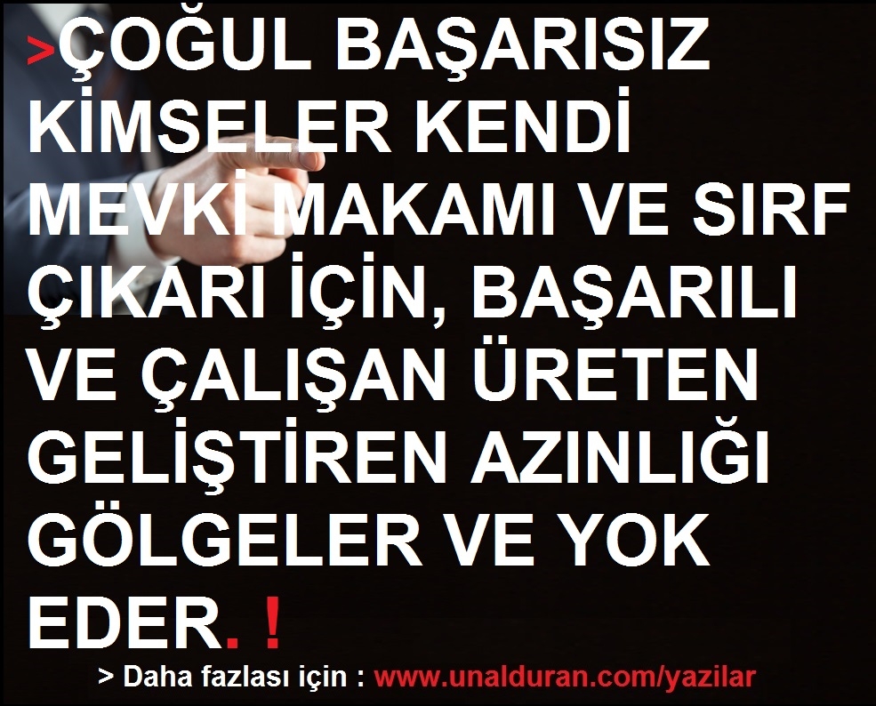 Demem şu ki ülkemizde bu olumsuzluklar ne yazık ki çoktur. Reçetesi de herkesin aklını başına alarak ülkemiz adına geleceğimiz adına evlatlarımız adına herkesin işini vatan ve millet aşkı ile yapması gerekliliğidir. Herkes bende dahil işimizi iyi yaparsak sorumlu yaparsak ülkemizin her dalında başarılı olacağımız gibi dünya gelişimi ile de yarış içinde olmuş oluruz. Kendi karşılaştığım gerçeklere bakarsam, neredeyse birçok kapıda beceriksiz ve işinin ehli olmayan yetersizler ordusu ülkemizi sarmış ve bizlere bir imkân sunmadıkları gibi, hiçbir açık kapıda bırakmadıkları sonucunu ortaya koymaktadır. Son olarak Elimden geldiğince bu olumsuzlukları dile getirirken kendimi yetiştirmeye devam edip dokunabildiğim insanlara da örnek olmaya yetiştirebildiğim kadar en doğru şekilde yetiştirmeye çalıştığımı da belirtmeliyim. Bunca serzeniş sonrasında tekrar etmek istiyorum. Ülkemizin başarısızlıklarından NE YAZIKKİ YALNIZCA SİZLER beceriksiz ve yetersizler ordusu sizler, torpilli ve haksız yere o değerli makamları ve imkanları kullanan sizler, ülkemize ve insanlarımıza doğru dürüst bir fayda vermeyen sizler SORUMLUSUNUZ. BİZLER DEĞİL. İşini ve görevini başarılı olarak yapan, hak yemeyen, doğru ve dürüst çalışkan tüm idarecilere, konum olan ve gerçekten işini çok iyi yapan antrenör ve tüm idareci ve görevlileri tenzih edip ayırarak hak eden herkese saygı ve sevgilerimi iletiyorum. Ünal duran